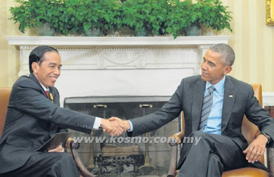 JOKOWI (kiri) berjabat tangan dengan Obama di pejabat Presiden AS itu di White House, Washington kelmarin.